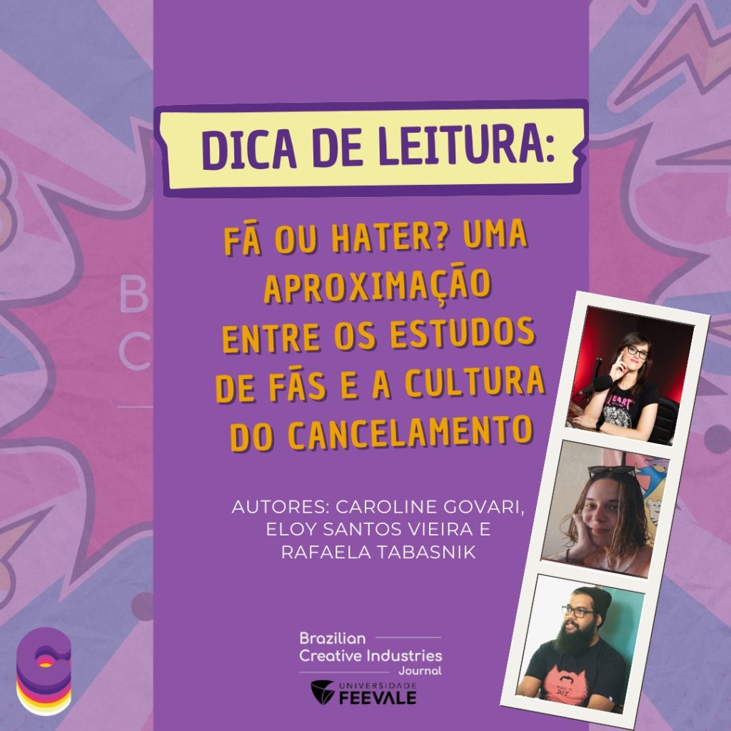 Parte 1 (conta com um artigo que escrevi em coautoria com Eloy Vieira e Rafaela Tasbasnik intitulado “Fã ou Hater? Uma aproximação entre os estudos de fãs e a cultura do cancelamento”)