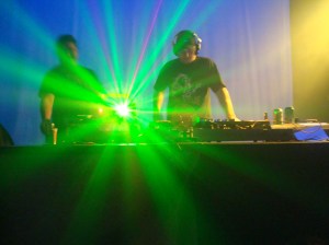 Final da noite: Gui Argenta, da Datavenia, sendo instruído por Márcio Mendonça na discotecagem (Foto: Carol Govari Nunes)
