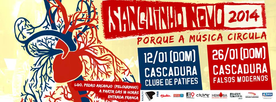 Para iniciar 2014 a todo vapor, o Cascadura – uma das bandas mais importantes do cenário da Bahia nos últimos anos – realiza mais uma edição do projeto batizado Sanguinho Novo. Além de entreter e levar música de graça para a população, o Cascadura transmite a importância do ato de doar sangue em todo o material gráfico do evento, nas entrevistas, no seu blog e vestindo a camisa da causa. Baseado nas ideias de renovação, circulação, troca e parceria, o Sanguinho Novo assume a atitude de compartilhamento tanto no viés artístico quanto no social. Por e-mail, o vocalista e guitarrista Fábio Cascadura nos contou um pouco sobre o projeto. Confere aí: