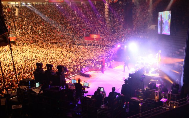 Chegamos no Gigantinho às 8 da manhã, os portões abriram às 6 da tarde, nem com toda a insistência e gritos das milhares de pessoas que estavam lá, os seguranças abriram os portões antes. Não é difícil ficar na fila, quando as pessoas têm algo em comum a conversa flui e o dia passa mais rápido. Os “únicos” problemas são a fome, a sede e a vontade de ir ao banheiro (que nesse caso ficava no outro lado daquela maldita rua super movimentada, transformando algo tão simples em uma missão impossível).