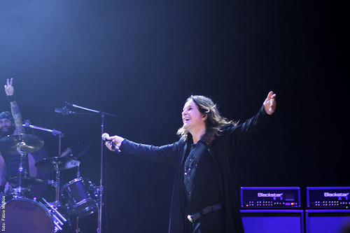 O Ozzy é lindo, magnífico, um gentleman. Mesmo com seus 62 anos e problemas de saúde causados pelos excessos do passado, comandou as quase duas horas de show como ninguém. Regia o público como um maestro, batia palmas, corria, jogava espuma e água nele mesmo e na platéia e até dava alguns pulinhos. Quem vê aquele tiozinho, meio curvado e com passinhos curtos, chegando no palco não acredita que ele se consiga durar o show todo, e ele o fez, melhor que muito gurizão de 20 anos por aí.