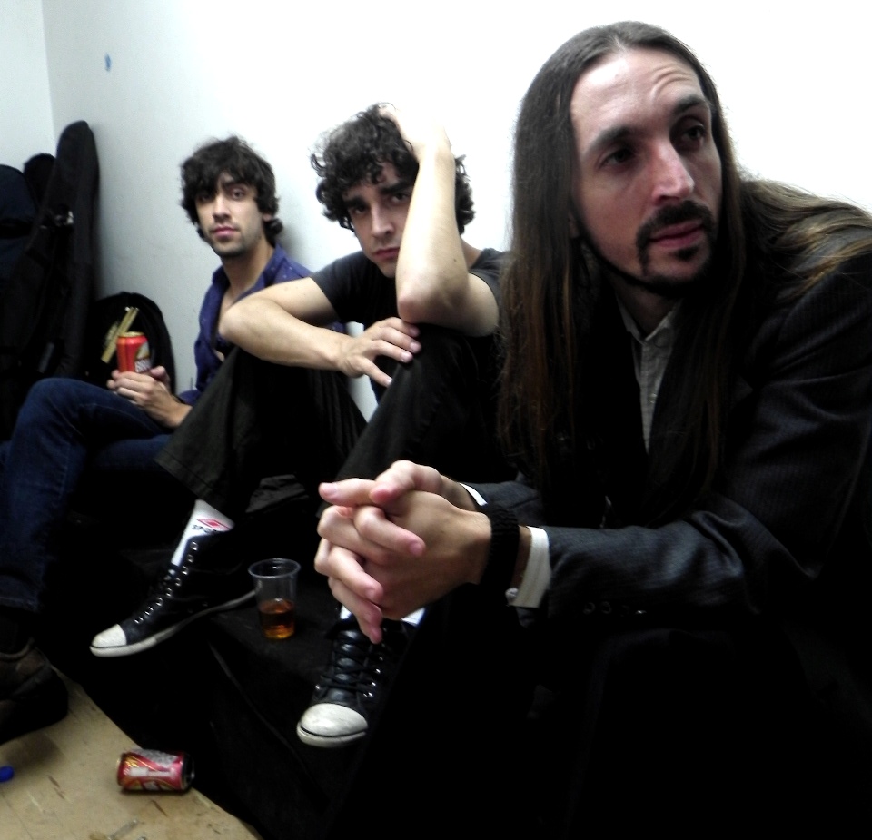 Giovane, Piá e Ricardo, da Back Doors Band, no camarim enquanto aguardam sua vez de tocar (Foto: Bruna Molena)