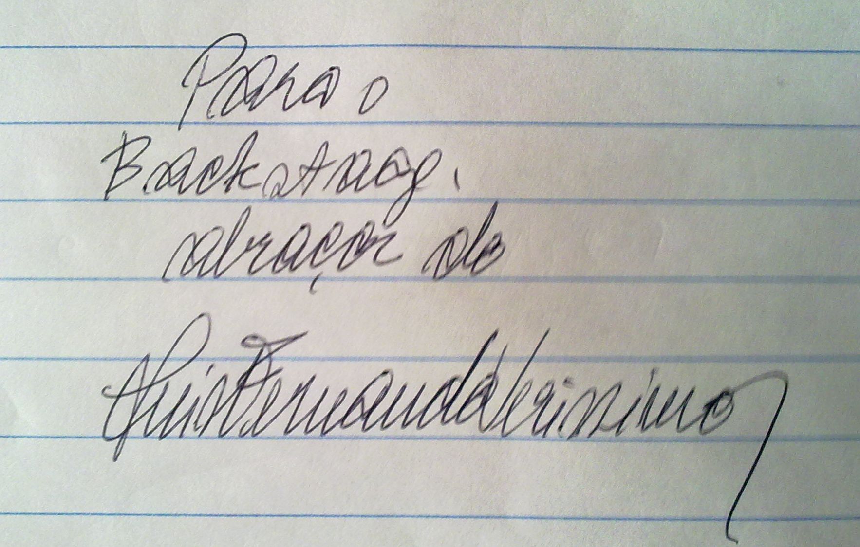 Minutos depois, Verissimo saiu do camarim e Felipe mostrou o cartão do blog ao escritor, dizendo que estávamos aguardando para fazer algumas perguntas sobre a banda. De imediato, Verissimo posicionou-se em minha frente e respondeu minhas perguntas. Na verdade, tudo não passou de uma conversa. Trocamos influências musicais: ele falou de Louis Armstrong, Charlie Parker, saxofones, jazz e bossa nova. Eu falei sobre The Ronettes, Imelda May, violões, guitarras e castanholas.